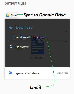 By default, all generated documents are placed in the Output folder. You will find your file there. Hover over the document and you will see options to print, download, mail, or sync it to cloud storage.